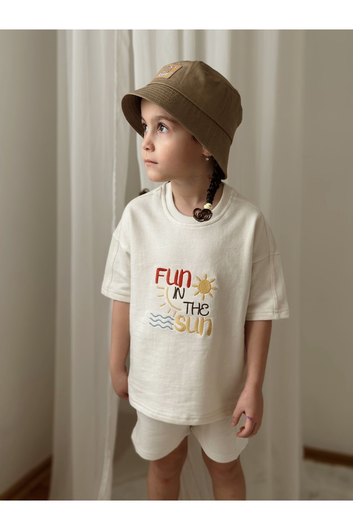 Soft and breathable, this unisex 2-in-1 outfit is made from 100% cotton with a lightweight knit. Featuring an oversize fit, elastic legs, and a classic crew neck in a neutral ecru tone. Comfortable, stylish, and perfect for everyday wear.